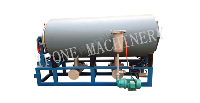 真空煅燒爐利用高分子聚合物在300℃左右時(shí)可以熔融,高于300℃隔絕空氣可裂解焦化,高于400℃在有少量空氣并有相對(duì)真空度的環(huán)境中可以氧化的特性,先將粘有高分子污物的工件加熱到300℃(根據(jù)工藝要求擬定),使工件上數(shù)量較多的高分子聚合物融化后流淌到爐膛下部的收集容器內(nèi),然后再將爐溫升高到400-500℃,同時(shí)打開真空泵,并通入少量新鮮空氣,使剩余的聚合物充分氧化,生產(chǎn)二氧化碳,經(jīng)水噴淋后通過(guò)水環(huán)式真空泵抽吸,和水一起排出爐外。